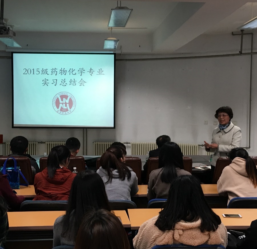 教学院长杨梅教授,邢永恒教授、赫春香教授、翁前峰教授、实习带队教师王澈、李坤老师以及药物化学专业和分析专业全体教师,2016级、2017级药物化学专业全体学生参加了此次总结会。会议由金牌影院