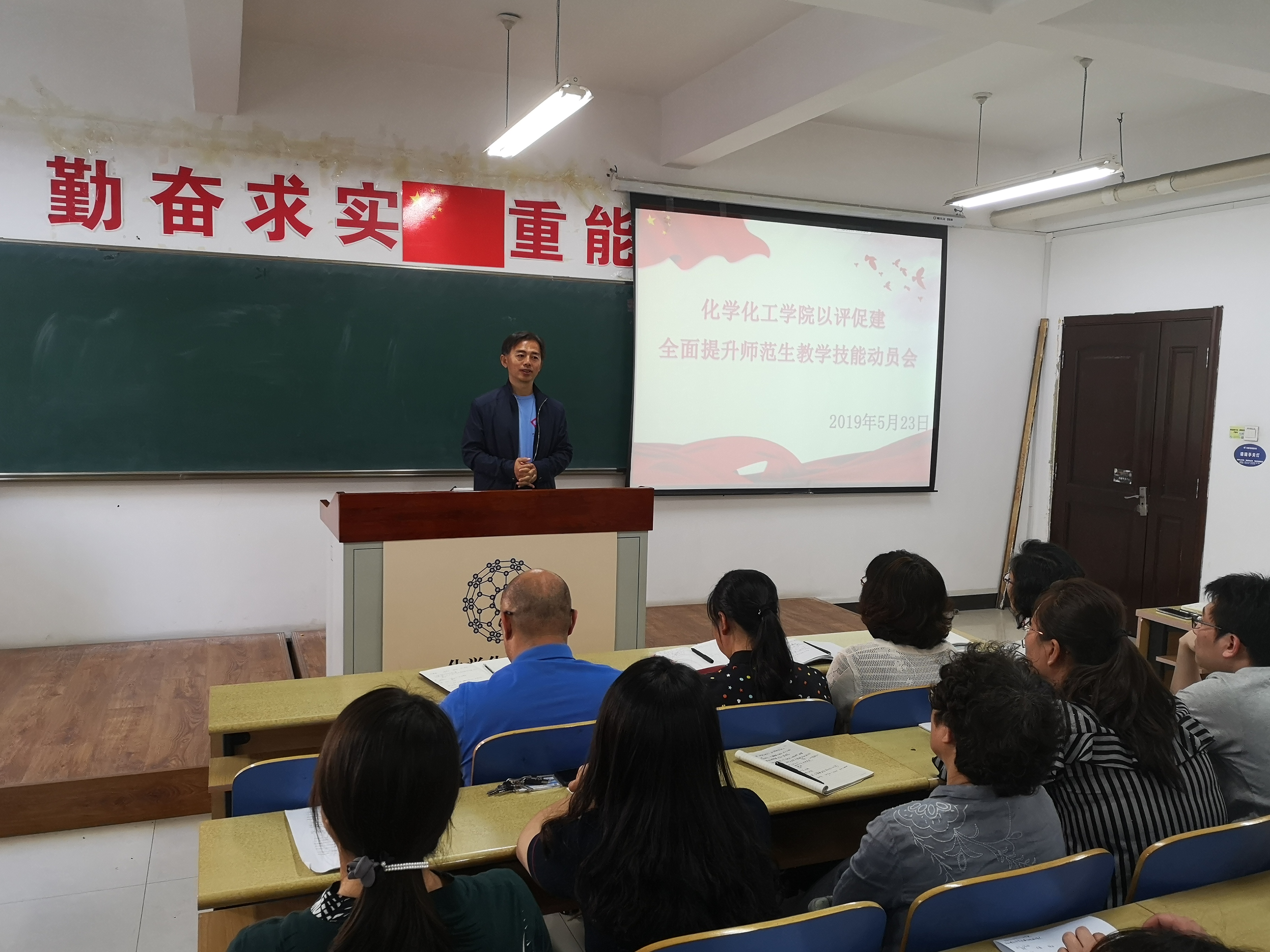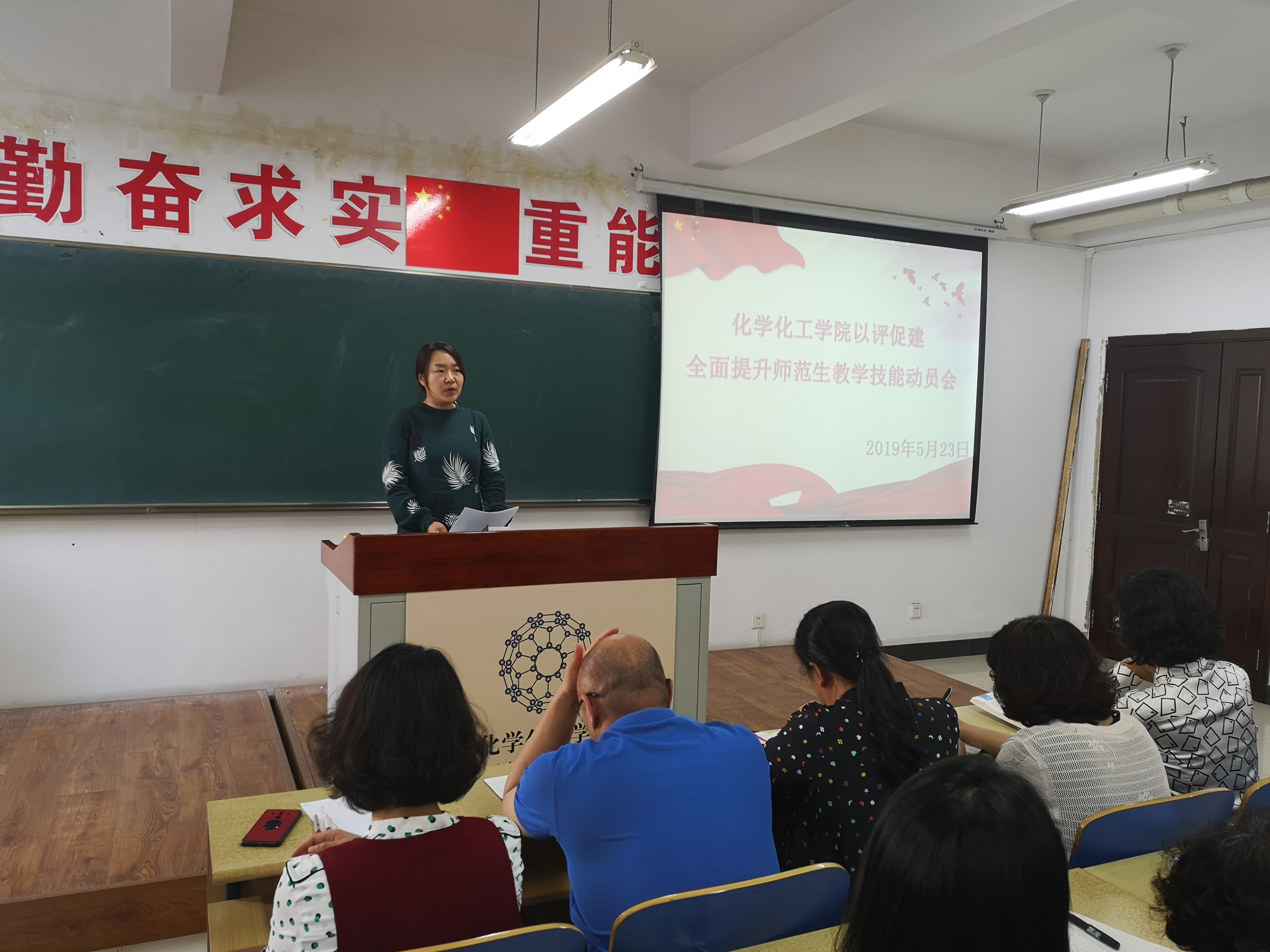 5月23日下午,我院在理化楼411召开“以评促建,全面提升师范生教学技能”主题活动动员大会。学院党委书记刘智广、院长王长生、党委副书记李金英、副院长金晶,学院化学教育研究所所长王秋、学院教学技能训练组白凤英、迟玉贤、单文娟、刘翠、朱江、张琳、李书实,团委书记苑朋栋、原2015级辅导员肖虹以及2015级化学师范专业全体同学参加了会议。会议由党委副书记李金英老师主持。