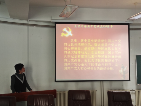 习近平总书记强调:“历史是最好的教科书。学习党史、国史,是坚持和发展中国特色社会主义、把党和国家各项事业继续推向前进的必修课。这门功课不仅必修,而且必须修好。”为庆祝建党一百周年以及建校七十周年,继续推进党史学习教育,金牌影院 教工第一党支部开展了一次名为“学习党史国史,践行初心使命”的党课学习。2021年5月7日于理化楼C401,金牌影院 教工第一党支部书记迟玉贤同志,为支部党员上了一堂《学习党史国史,践行初心使命》的党课