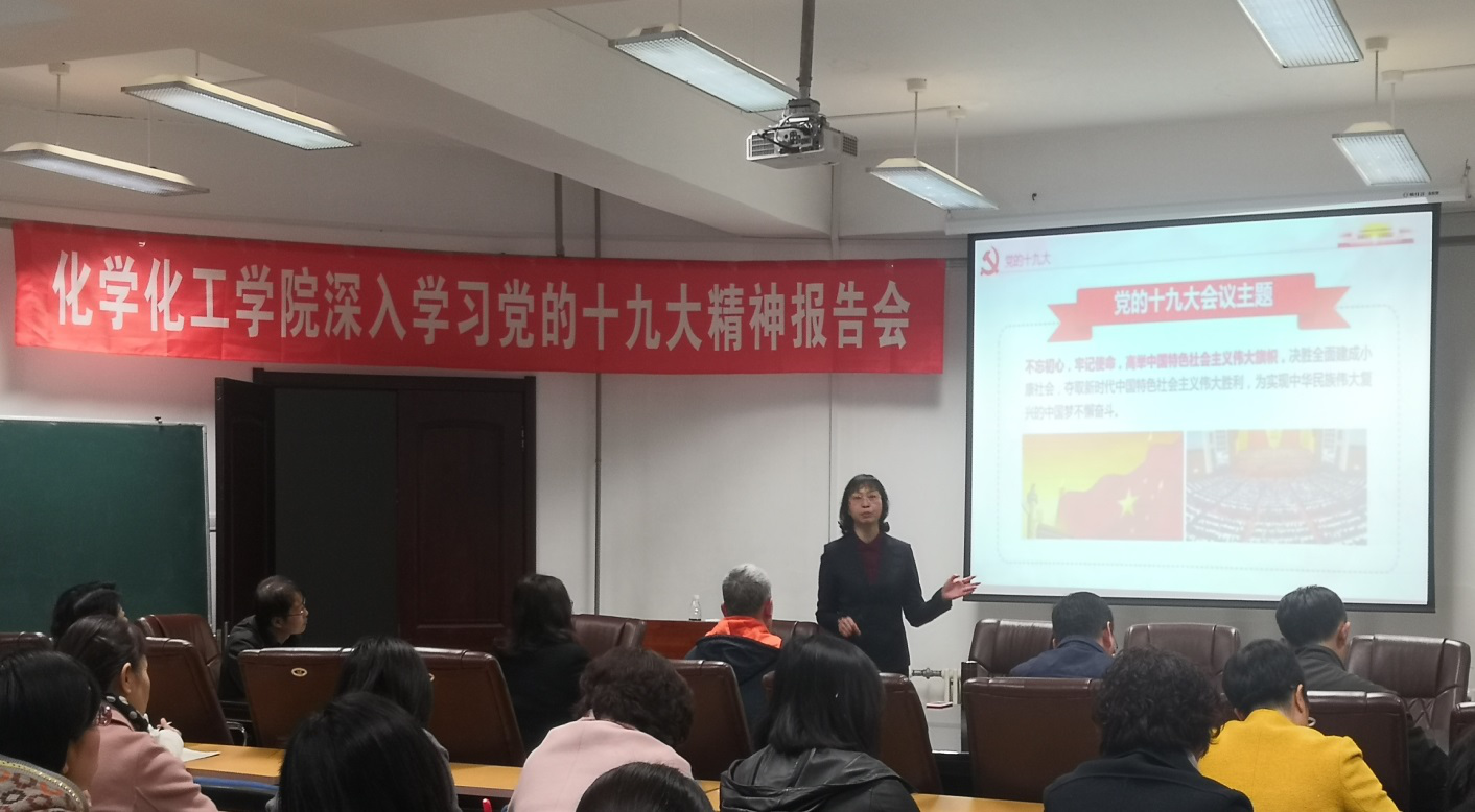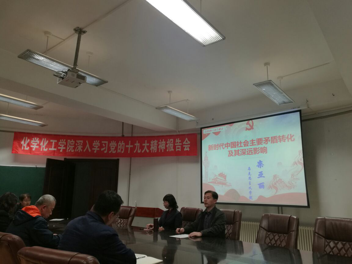 于理化楼C区401会议室举办学习党的十九大精神专题报告会,邀请马克思主义学院副教授栾亚丽为全体教师职工作了一场题为“新时代中国社会主要矛盾转化及其深远影响”的报告。报告会由学院党总支书记刘智广主持。