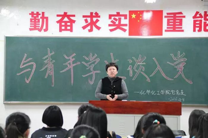 学院分党校第一讲“与青年学生谈入党”在理化楼C区411教室举行。主讲人为学院党委副书记李群老师。李群老师连续多年从事党、团组织工作,具有丰富的党课经验。