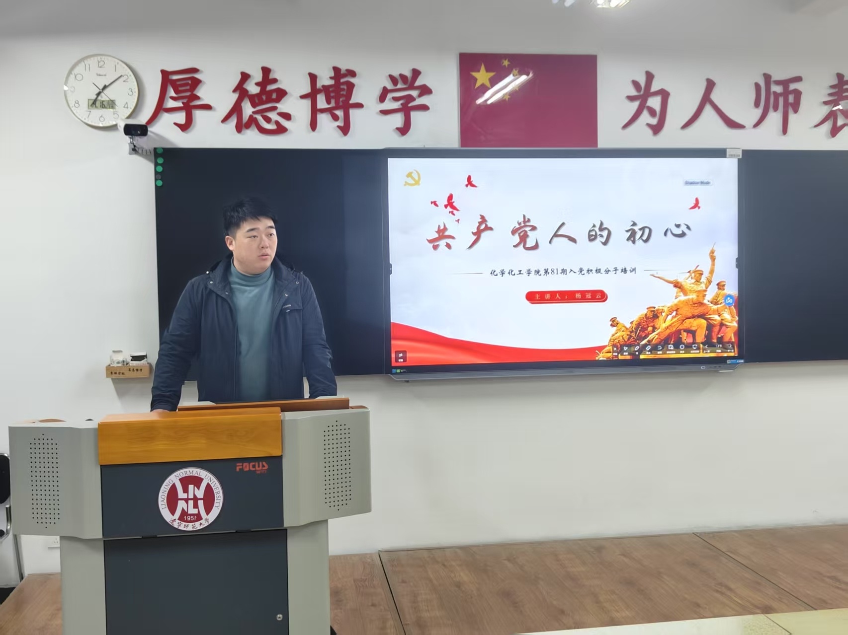 为持续推进入党积极分子的培养教育工作,深化思想政治引领,4月16日,我院于理化楼C416组织开展第81期入党积极分子培训第二讲。本次培训由本科生党支部书记杨冠云老师主讲,主题为“共产党人的初心”。