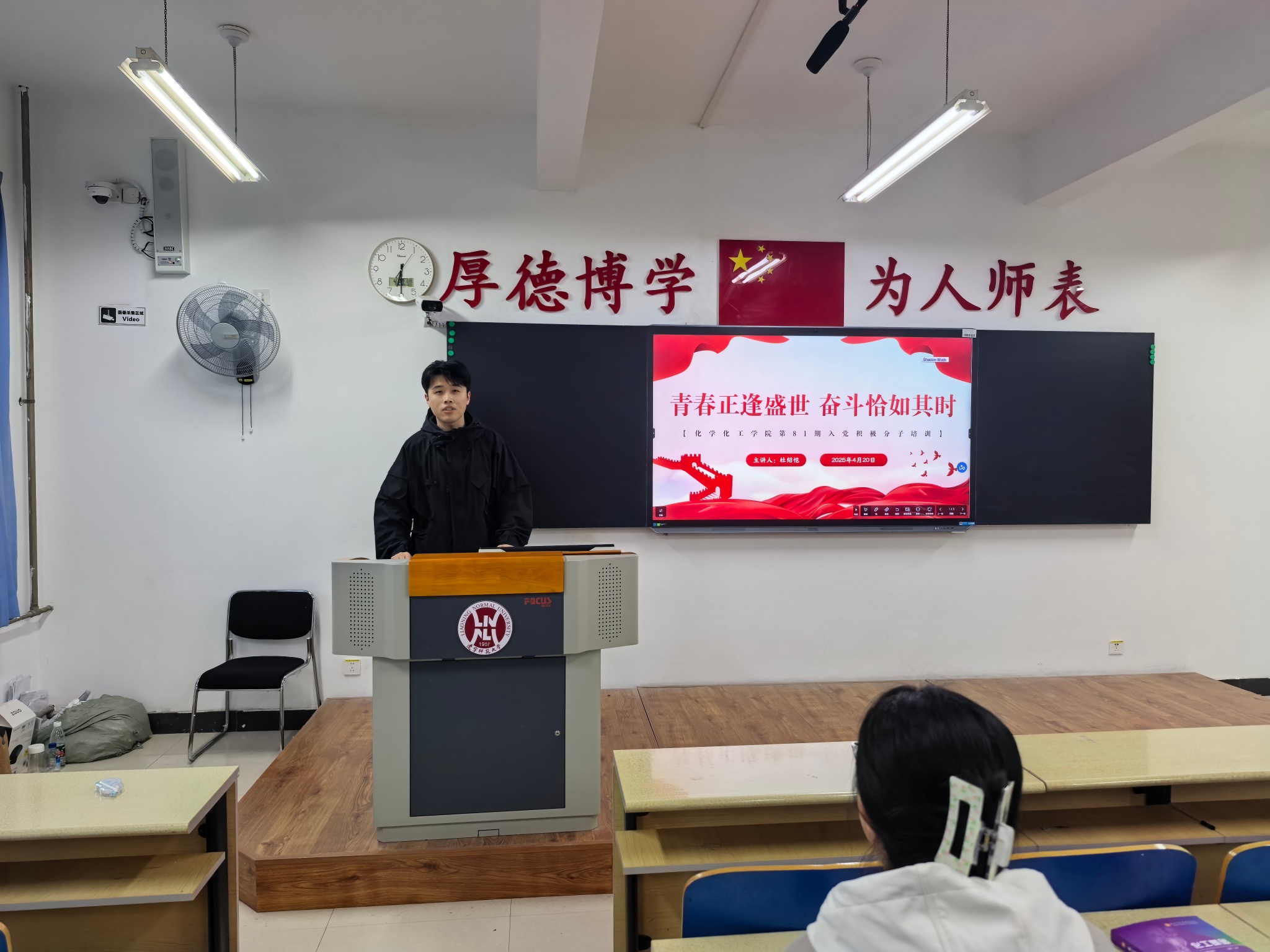 为加强入党积极分子在青年时期对责任担当的理解,寻找正确的奋斗方向,4月20日,我院于理化楼C416组织开展第81期入党积极分子培训第五讲。本次培训由我院学生兼职辅导员杜绍恺主讲,主题为“青春正逢盛世,奋斗恰如其时”。