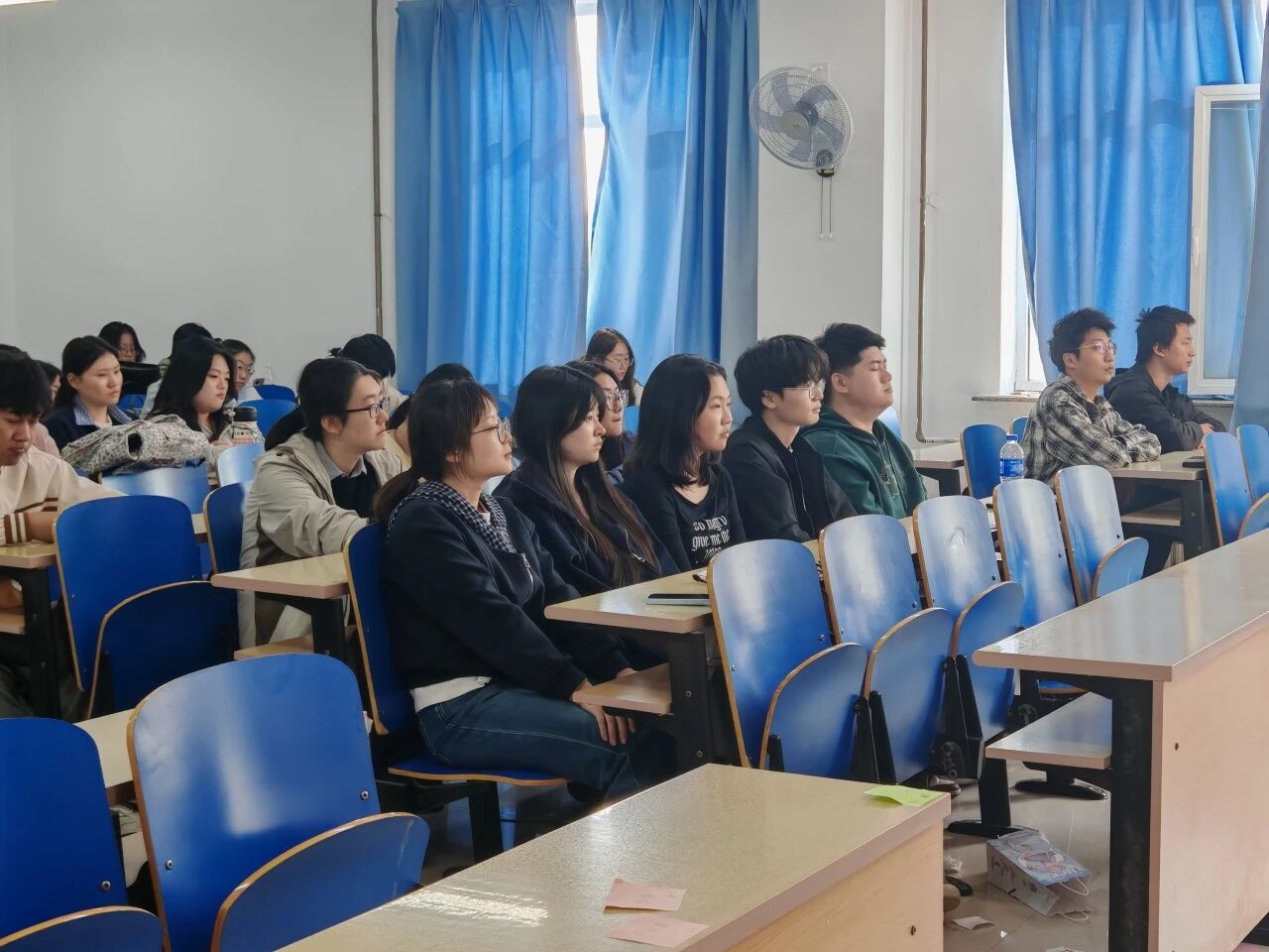 于伟老师以抗日战争的光辉历程为切入点,系统回顾了那段艰苦卓绝的岁月。她指出,抗战是一部千锤百炼的英雄史诗,中国人民在血与火的考验中铸就了视死如归的民族气节、血战到底的英雄气概和百折不挠的必胜信念,这段历史深刻启示我们,要始终将个人命运与国家前途紧密相连,以不屈的脊梁扛起时代重任。她强调,新时代青年要以史为鉴,做到“四维协同”:以维护和平筑牢发展根基,以民族振兴推动国家图强,以深化国际合作促进共同进步,以传承优秀文化赓续精神血脉。最后,她围绕“以青春担当续写抗战精神”发出号召,鼓励同学们坚定理想信念、厚植爱国情怀,勤奋学习增强本领,勇担时代责任,以实际行动践行初心使命。