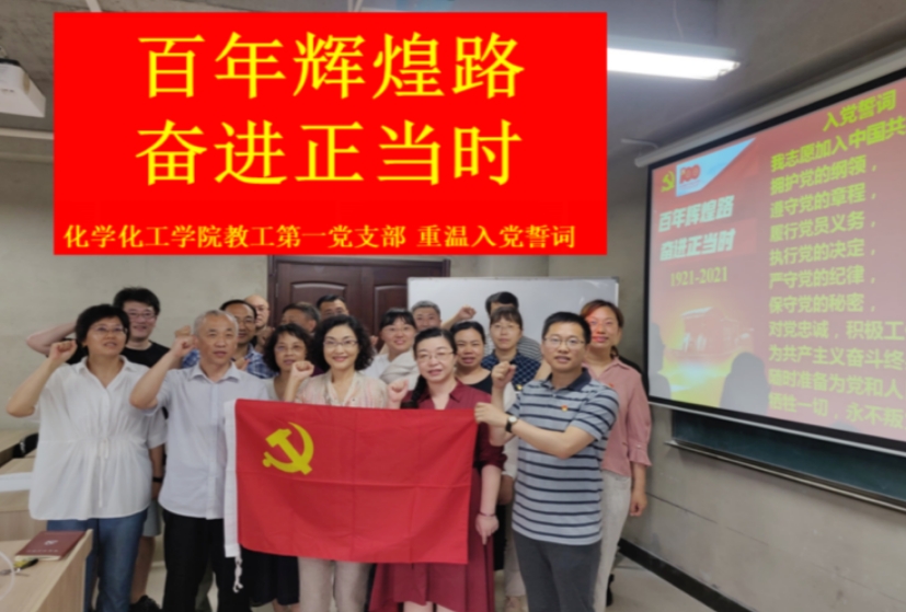 在中国共产党成立100周年之际,我院教工第一党支部全体党员教师,于2021年7月1日在理化楼B106,重温入党誓词。