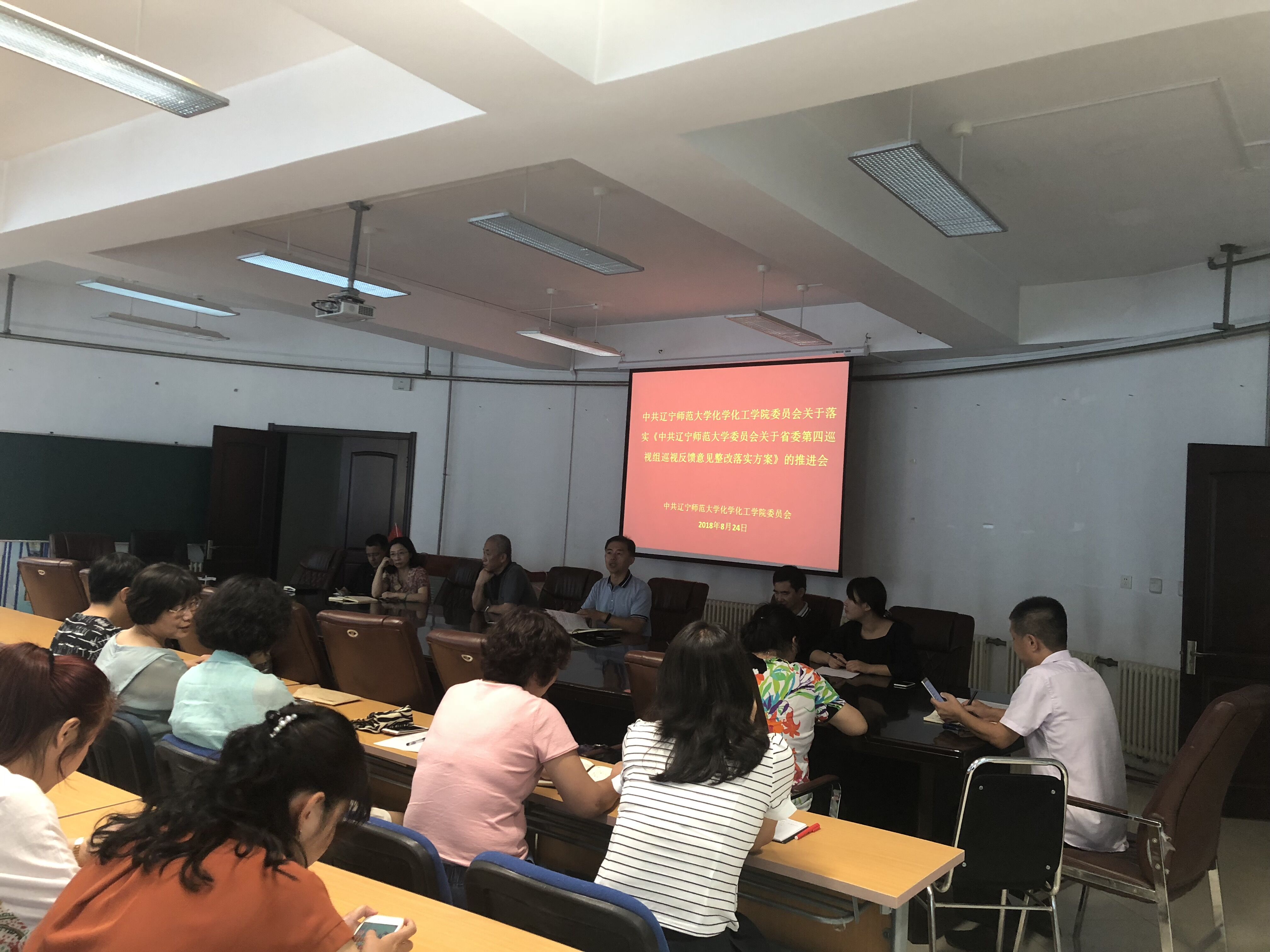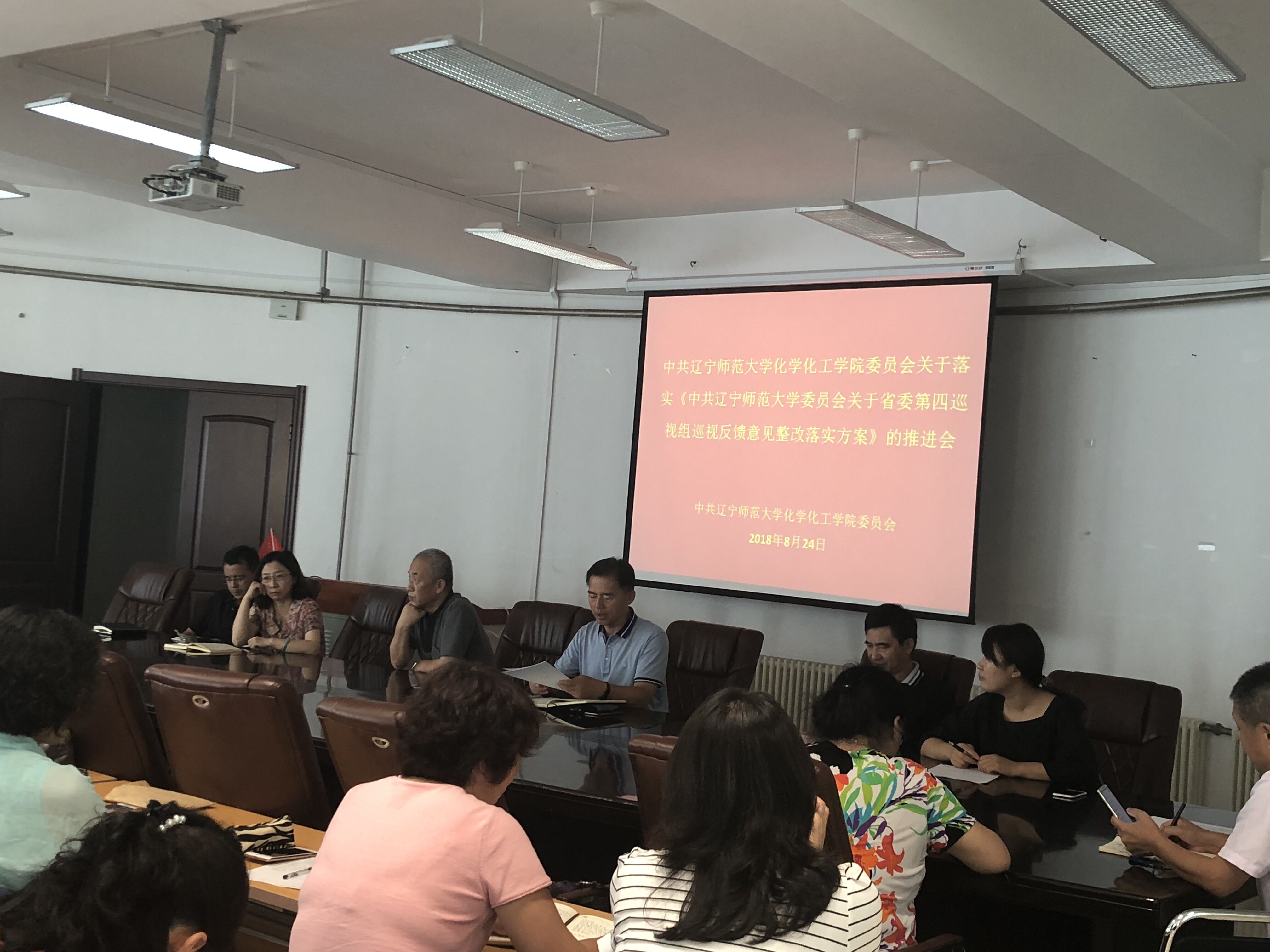 为深入贯彻习近平总书记、省委陈求发书记关于巡视整改的重要讲话精神和指示精神,全面落实省委第四巡视组反馈意见,结合我校党委的相关工作要求,8月24日,我院在理化楼C区401会议室召开关于落实《中共辽宁师范大学委员会关于省委第四巡视组巡视反馈意见整改落实方案》的推进会,部署整改落实工作,学院党总支书记刘智广主持会议,全体教师参加。
