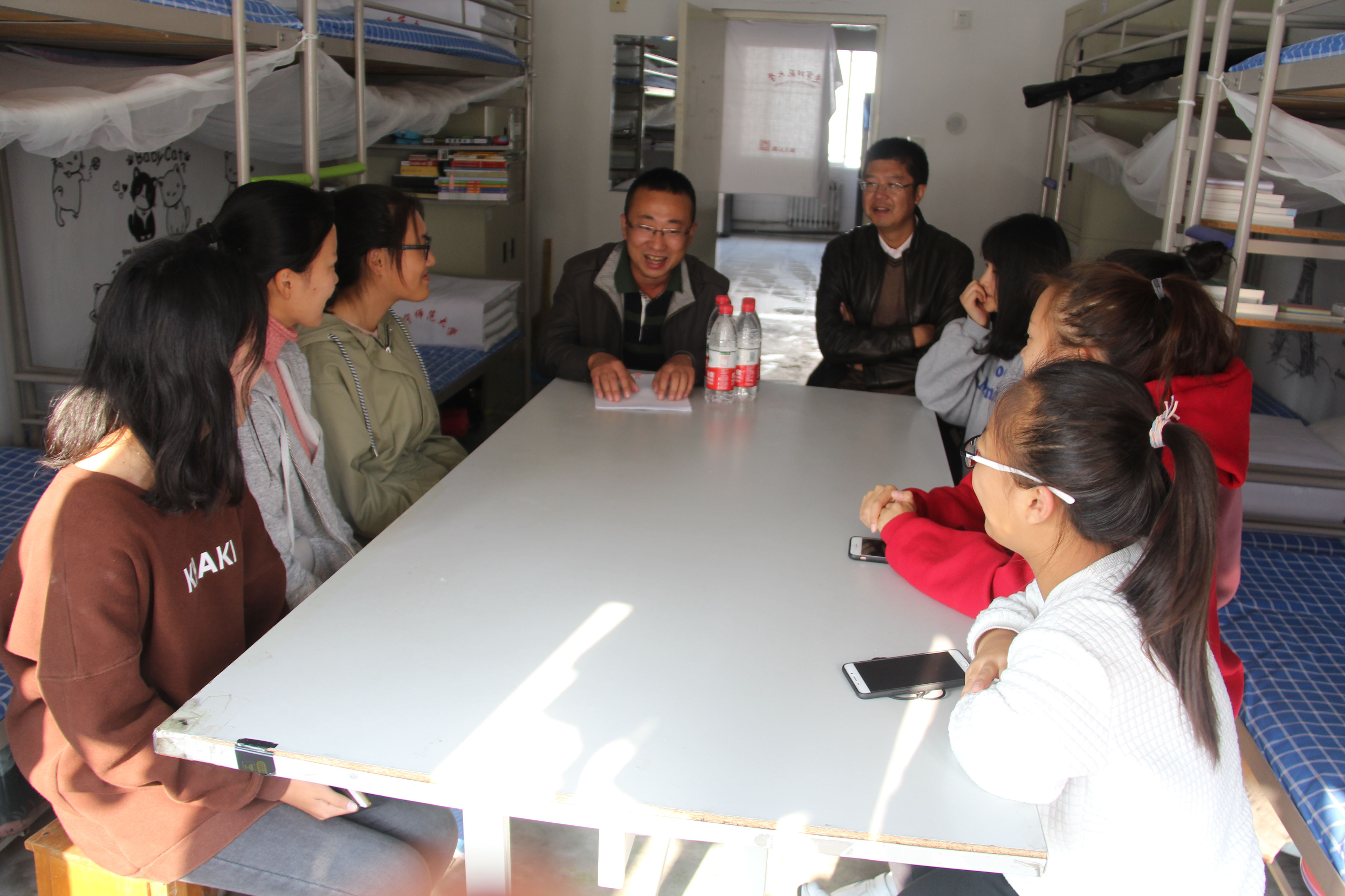 2017年10月27日下午,校审计处处长史桢昕老师、副处长曲守勋老师一同走进十六舍A444寝室,与我院2017级八名本科生进行了座谈交流。