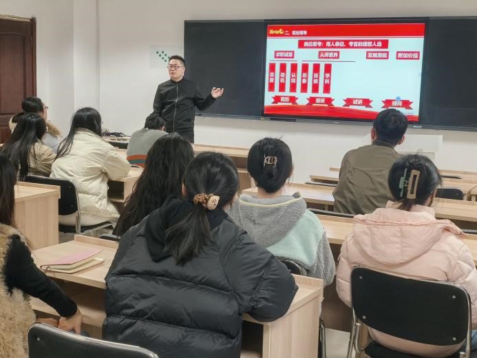 在“就业指导”环节,教师第四党支部王立新老师以“换位思考”为核心视角,为研究生带来一场深入实用的就业指导讲座。他引导同学们跳出求职者身份,从用人单位与面试官的真实需求出发,重新审视求职全流程。王老师指出,求职者不仅要在应聘过程中充分展现个人的“诚意”“态度”与“动机”,更应突出从师素养与从教潜能。讲座还结合简历制作、面谈应答、试讲表现及试讲后答辩等关键环节,具体讲解了如何系统展示学科专业知识、教学实践能力、技术应用水平与个人综合气质,助力学生在激烈竞争中构建差异化优势,提升应聘技能与核心竞争力。