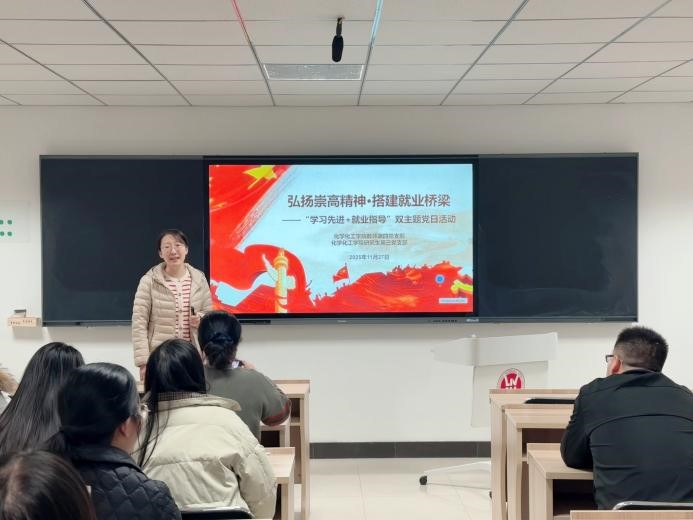 教师第四党支部与研究生第三党支部联合开展以“弘扬崇高精神·搭建就业桥梁”为主题的党日活动。活动将学习先进典型与就业实战指导相结合,取得扎实成效。