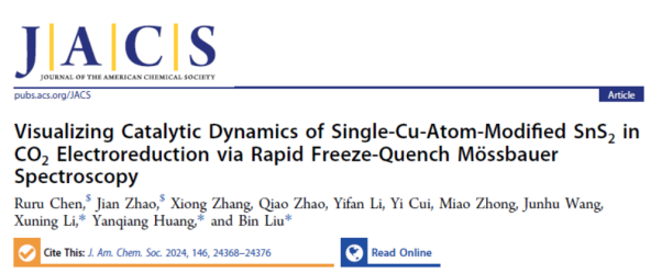 论文信息:Visualizing Catalytic Dynamics of Single-Cu-Atom-Modified SnS2in CO2Electroreduction via Rapid Freeze-Quench Mössbauer Spectroscopy