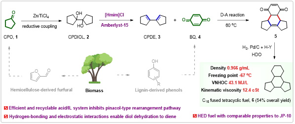 论文信息:Catalytic production of fused tetracyclic high-energy-density fuel with biomass-derived cyclopentanone and benzoquinone